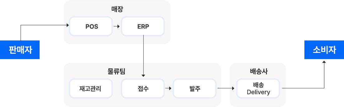 자사 POS와 전산간 I/F하여 결제 즉시 배송요청되는 I/F체계를 구축, 주문과 재고관리를 간소화함